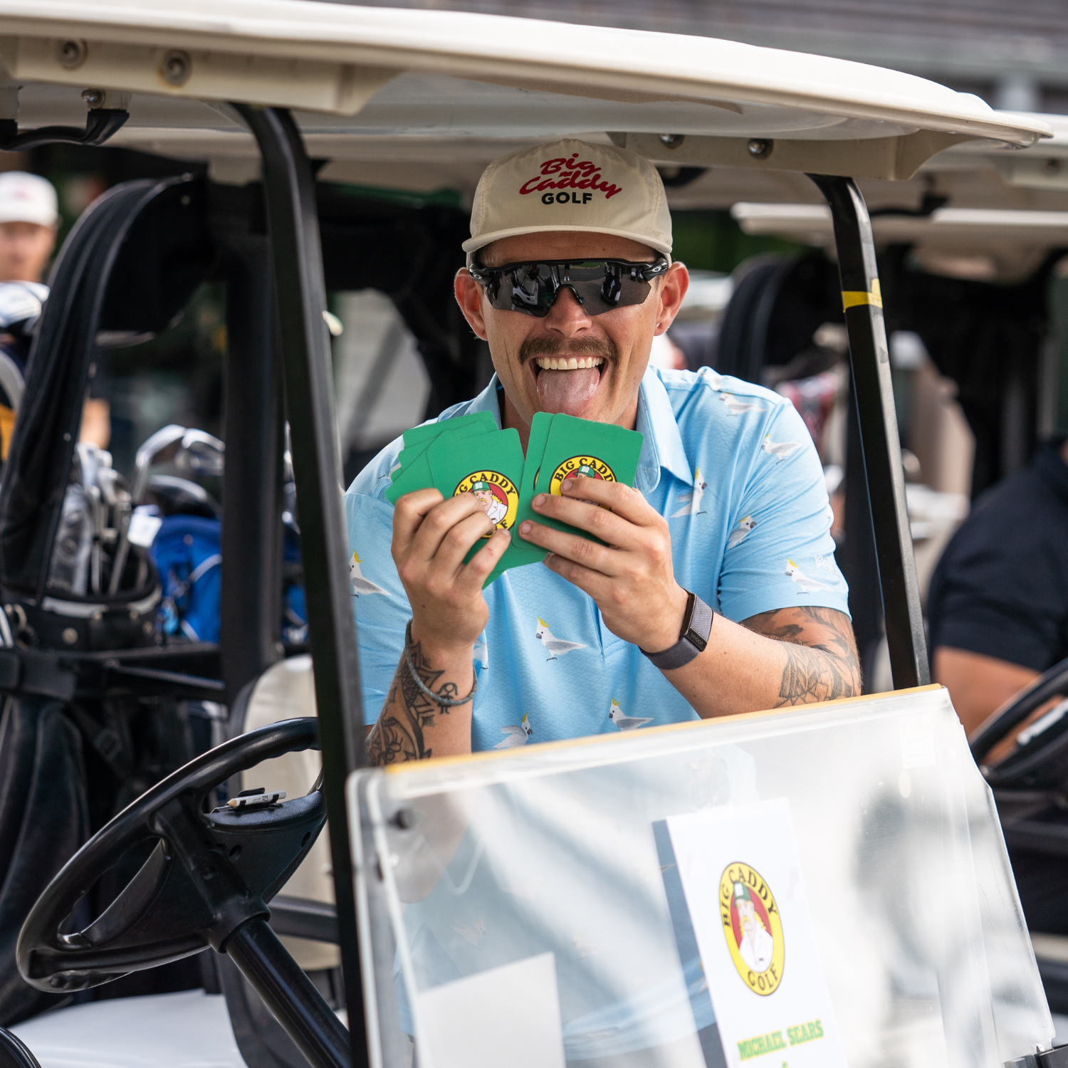 To play Big Caddy, simply select a card from the deck and follow its instructions, whether it's escaping a tough lie or challenging your mates to a longest drive showdown. Keep playing cards until you reach the final hole, and may the best golfer — or card player — win!